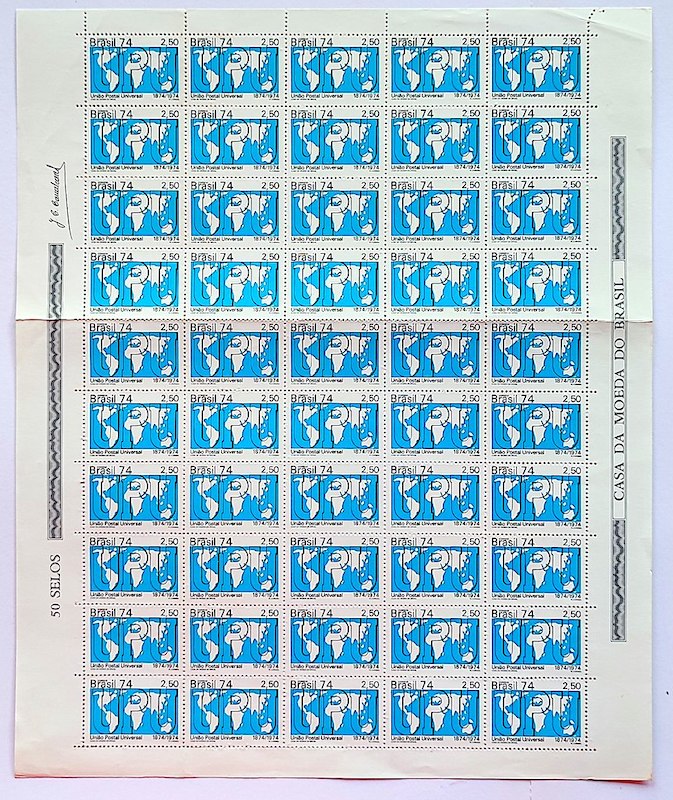 C 858 Selo Centenario da Uniao Postal Universal UPU Servicos Postais 1974 Folha