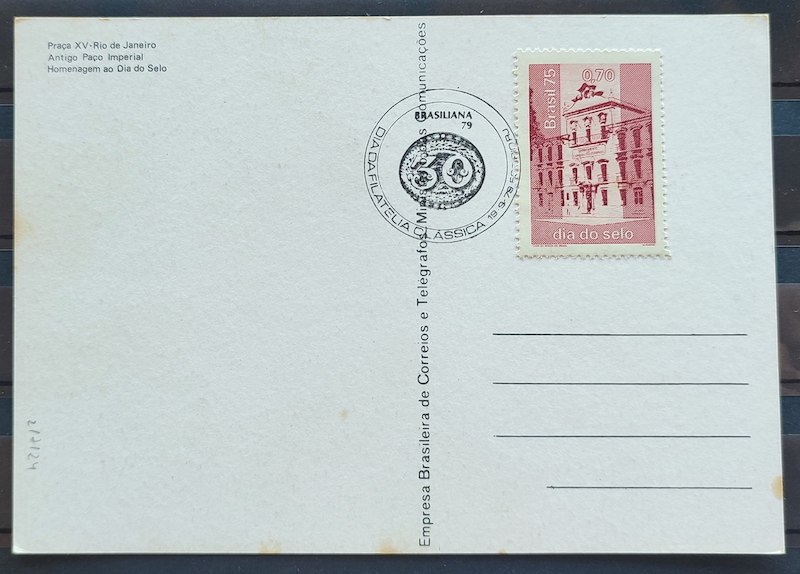 Cartao Postal 1975 Dia do Selo Filatelia Paco Imperial Monarquia CBC RJ