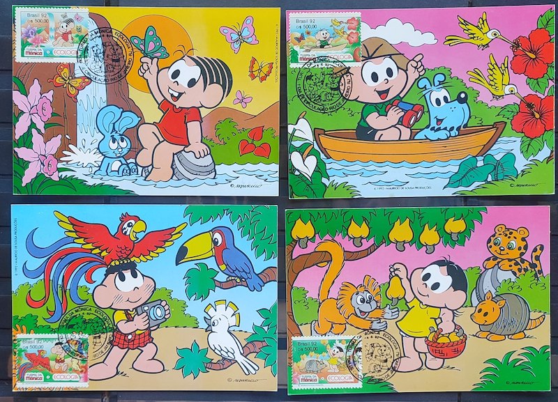 Maximo Postal 1992 Turma da Monica Fauna Passaro Cachorro Coelho Tucano Macaco Cartao CBC RJ Serie Completa
