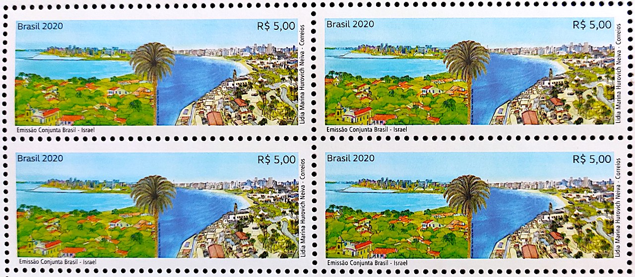 C 3914 Selo Emissao Conjunta Brasil Israel Turismo Direito 2020 Quadra