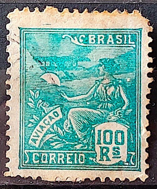 Selo Regular Cod RHM 254 Vovo Aviacao Aviao 100 Reis Filigrana H 1929 Circulado 3