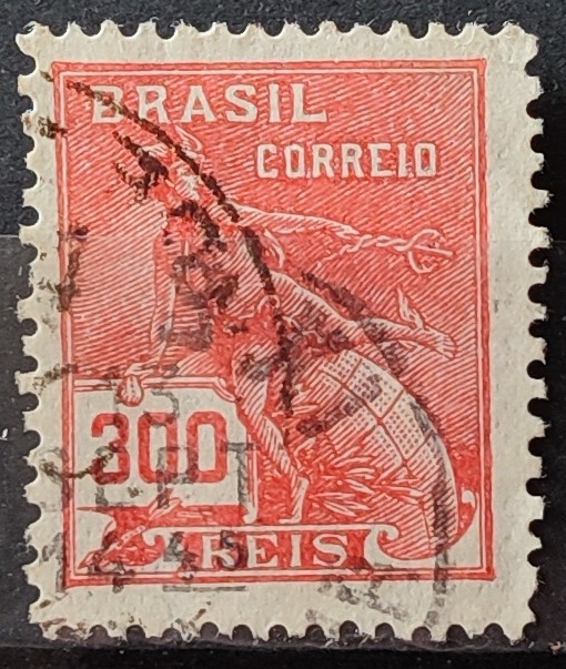 Selo Regular Cod RHM 264 Vovo Mercurio e Globo 300 Reis Filigrana I 1929 Circulado 8