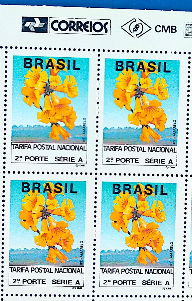 Selo Regular RHM 690 Comprovante de Franqueamento 2 Porte Ipe Amarelo 1992 Quadra