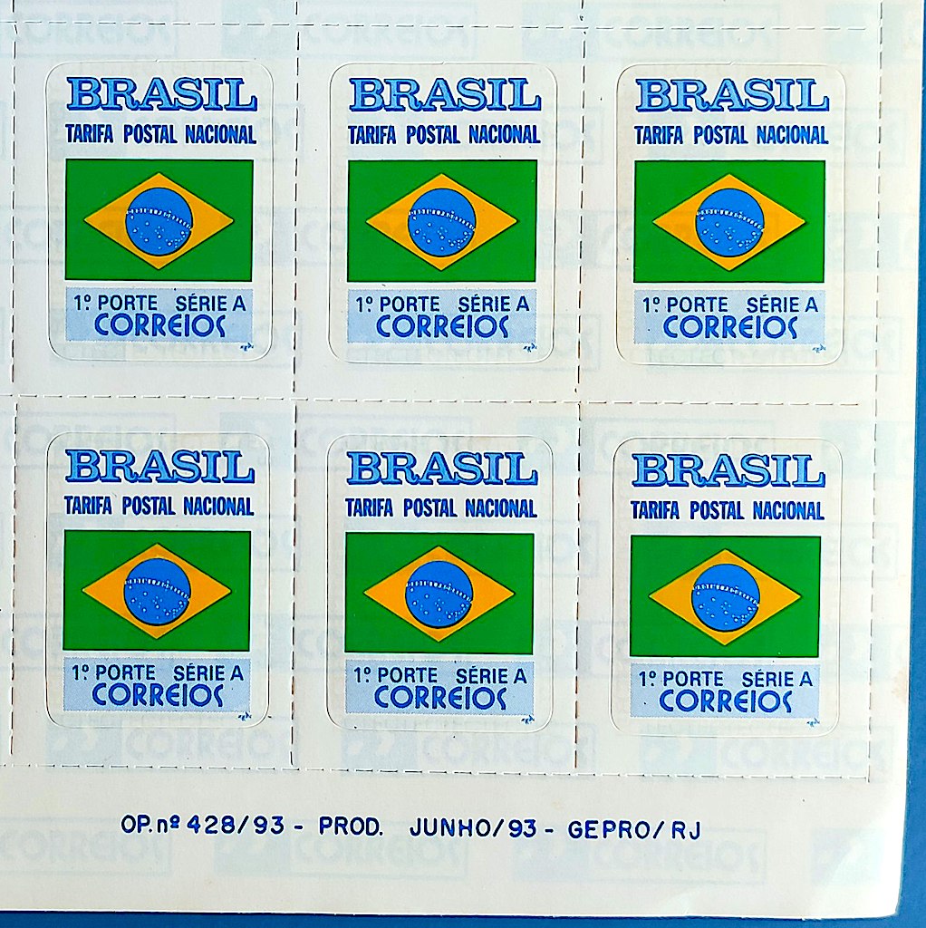 Selo Regular RHM 695 Bandeira Nacional FSF ECT 1993 Sextilha Vinheta GEPRO RJ 2