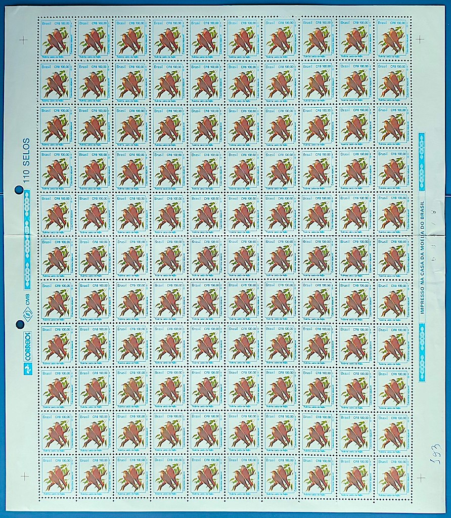 Selo Regular RHM 703 Passaros Urbanos Rolinha CRS 100 1994 Folha