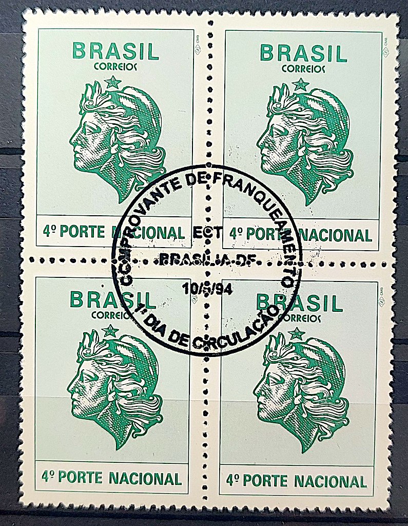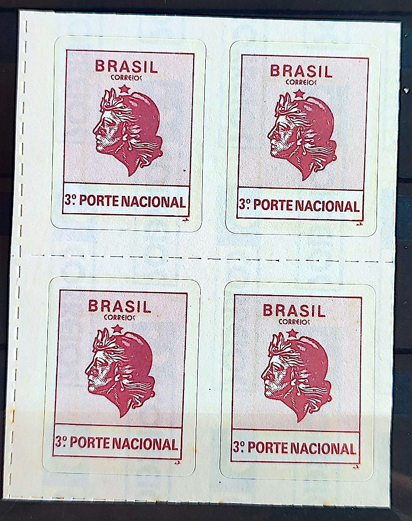 Selo Regular RHM 707 Comprovante de Franqueamento 3 Porte Efigie Mulher 1994