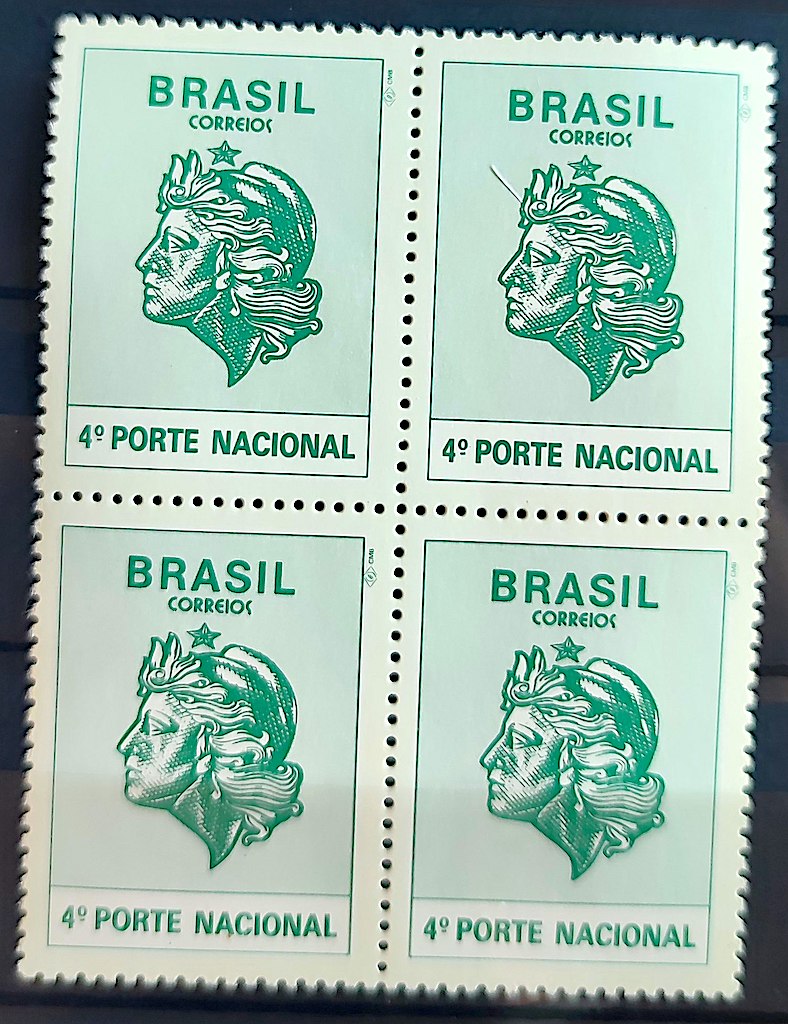 Selo Regular RHM 708 Comprovante de Franqueamento 4 Porte Efigie Mulher 1994 Quadra