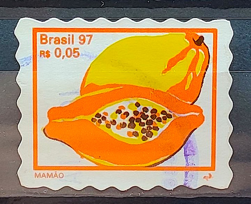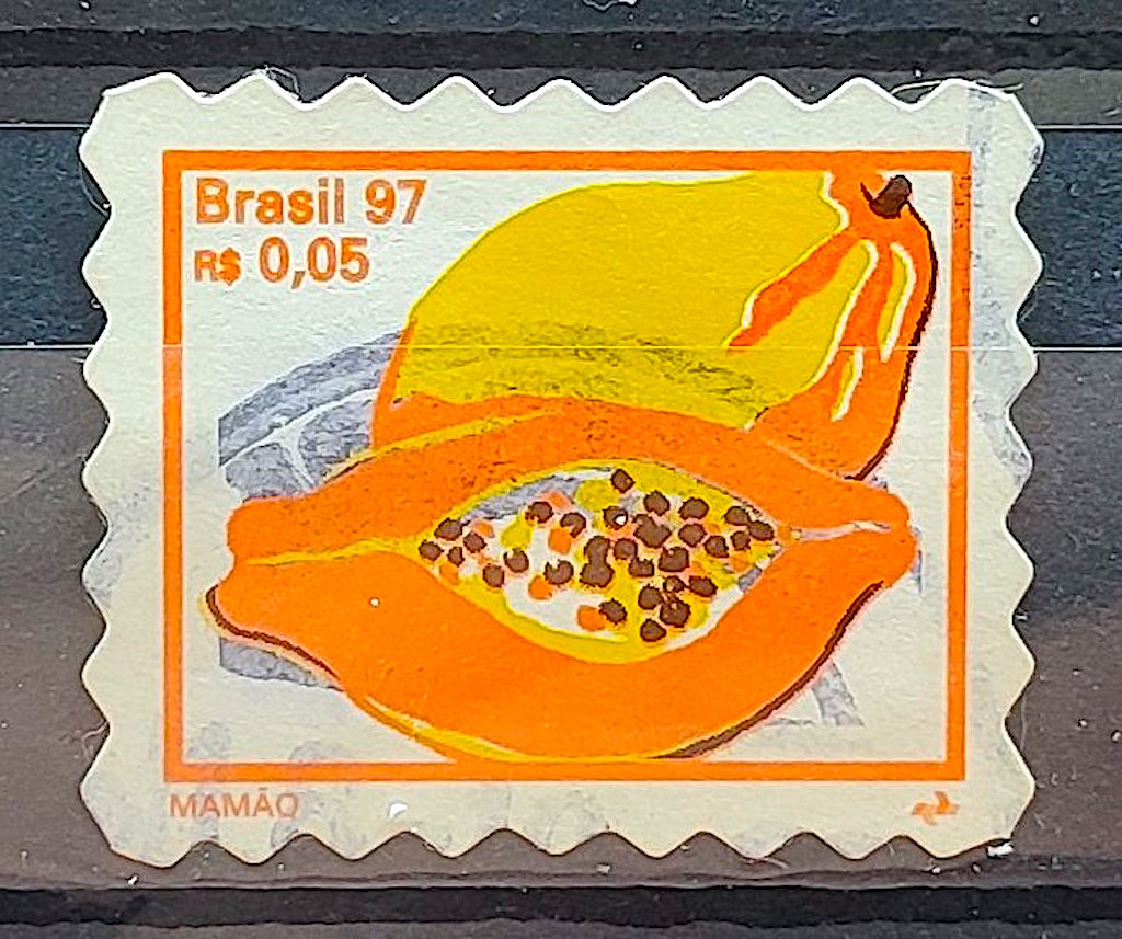 Selo Regular RHM 751 Fruta Mamao Perce em Onda 1998 Circulado 2