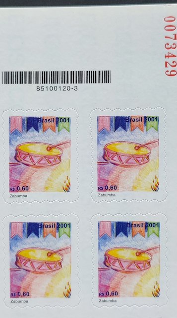 Selo Regular RHM 810 Instrumento Musical Zabumba 2001 Quadra Vinheta Correios