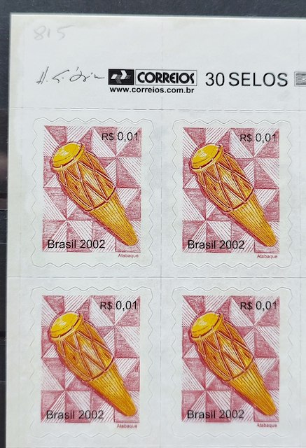 Selo Regular RHM 815 Instrumento Musical Perce em Ondas Atabaque 2002 Quadra