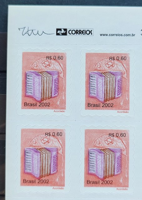 Selo Regular RHM 819 Instrumento Musical Perce em Ondas Chocalho 2002 Quadra Codigo de Barras