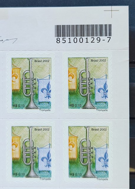 Selo Regular RHM 822 Instrumento Musical Perce em Ondas Trompete 2002 Quadra Codigo de Barras
