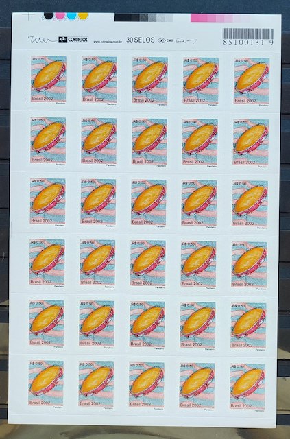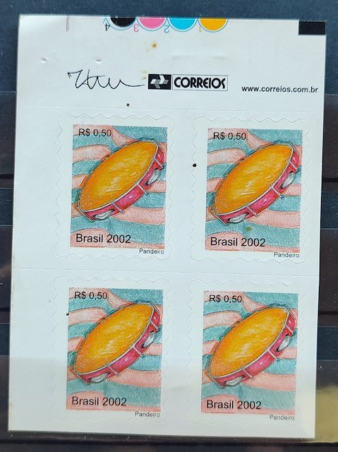 Selo Regular RHM 824 Instrumento Musical Perce em Ondas Pandeiro 2002 Quadra Codigo de Barras