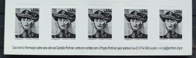 Selo Regular RHM 827 Obra Desaparecida Portinari Menino de Brodowski Arte 2003 Quadra Vinheta Correios