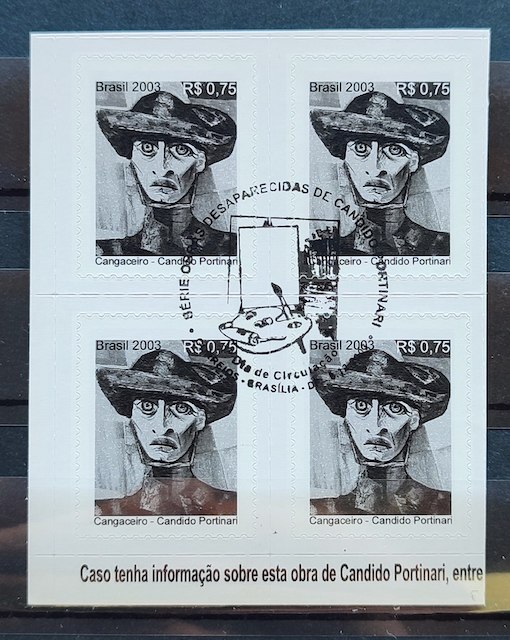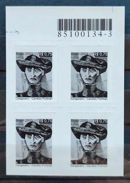 Selo Regular RHM 828 Obra Desaparecida Portinari Cangaceiro Arte 2003 Quadra Codigo de Barras