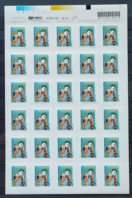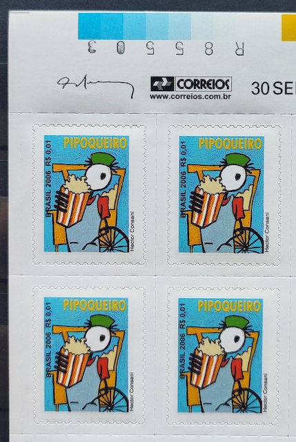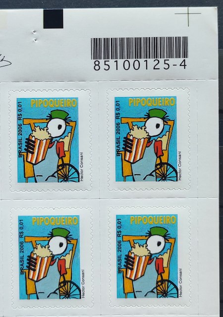 Selo Regular RHM 842 Profissao Pipoqueiro Trabalho Economia Picote Sem BR 2006 Quadra Codigo de Barras