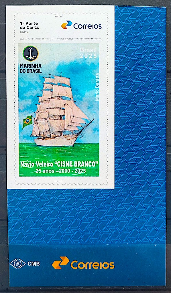 SI 109 Selo Institucional 25 Anos do Navio Veleiro Cisne Branco Marinha 2025 Vinheta Correios